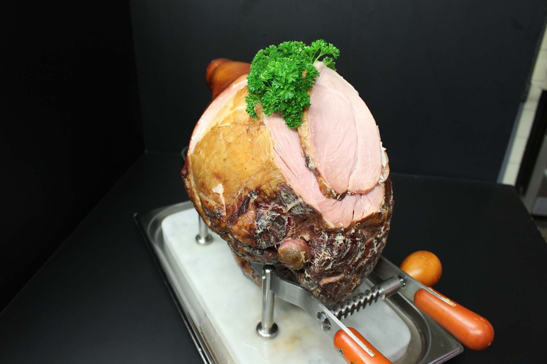 ist ein "Mitbringsel" aus der Heimat des Chefs. Er wird nach originaler Schwarzwälder Rezeptur hergestellt und über Spänen von Tannen- und Fichtenholz über 4 Wochen schonend kaltgeräuchert.